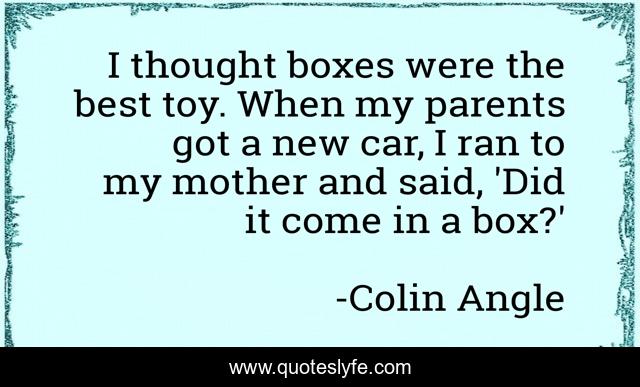 This page presents the quote "I thought boxes were the best toy. When my parents got a new car, I ran to my mother and said, 'Did it come in a box?'". Author of this quote is Colin Angle. This quote is about parents, best, mother,.