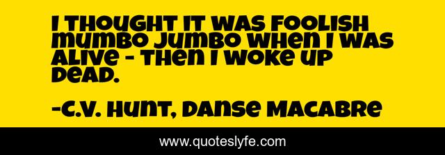 This page presents the quote "I thought it was foolish mumbo jumbo when I was alive - then I woke up dead.". Author of this quote is C.V. Hunt, Danse Macabre. .