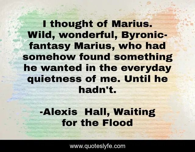 "Alexis Hall, Waiting for the Flood Quotes." Quoteslyfe.com, 2025. Fri. 05 Dec. 2025. <https://www.quoteslyfe.com/quote/I-thought-of-Marius-Wild-wonderful-Byronic-173185>.