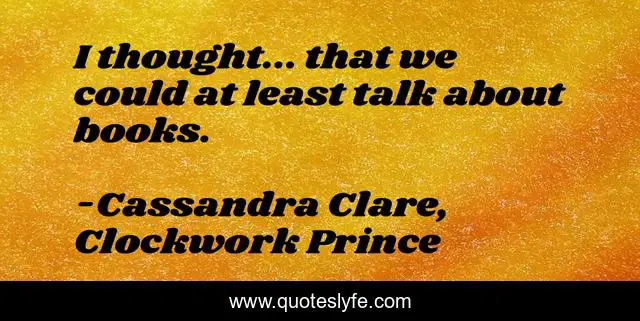 This page presents the quote "I thought... that we could at least talk about books.". Author of this quote is Cassandra Clare, Clockwork Prince. This quote is about books, will-herondale,.