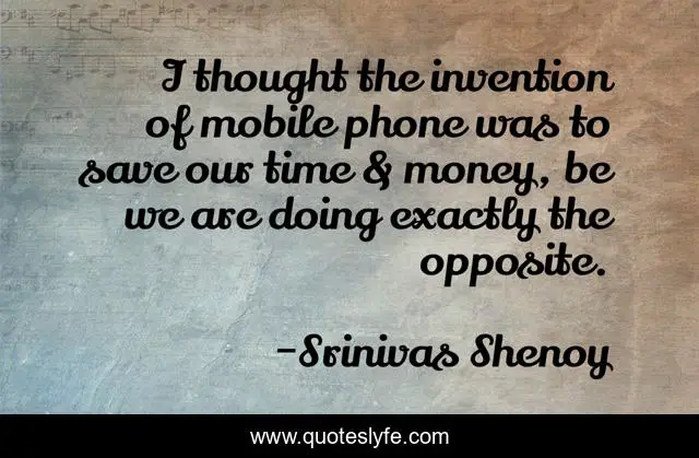 This page presents the quote "I thought the invention of mobile phone was to save our time & money, be we are doing exactly the opposite.". Author of this quote is Srinivas Shenoy. This quote is about human-nature, mobile-phones, invention, time, money,.