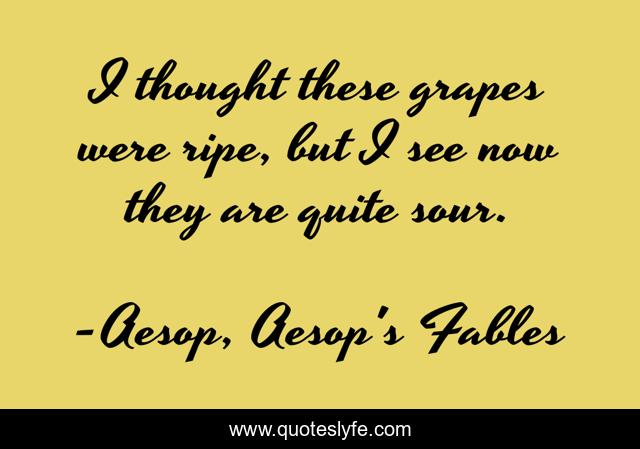 "Aesop, Aesop's Fables Quotes." Quoteslyfe.com, 2025. Mon. 08 Dec. 2025. <https://www.quoteslyfe.com/quote/I-thought-these-grapes-were-ripe-but-179936>.