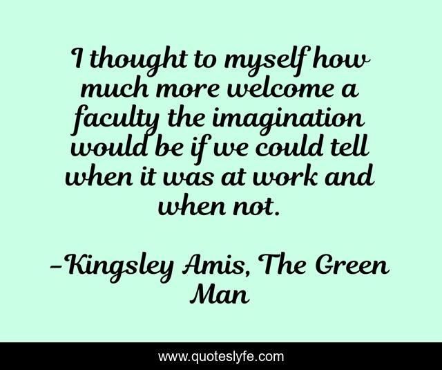 This page presents the quote "I thought to myself how much more welcome a faculty the imagination would be if we could tell when it was at work and when not.". Author of this quote is Kingsley Amis, The Green Man. .