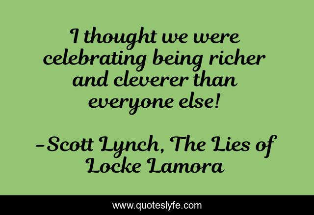 "Scott Lynch, The Lies of Locke Lamora Quotes." Quoteslyfe.com, 2025. Sat. 06 Dec. 2025. <https://www.quoteslyfe.com/quote/I-thought-we-were-celebrating-being-richer-144057>.