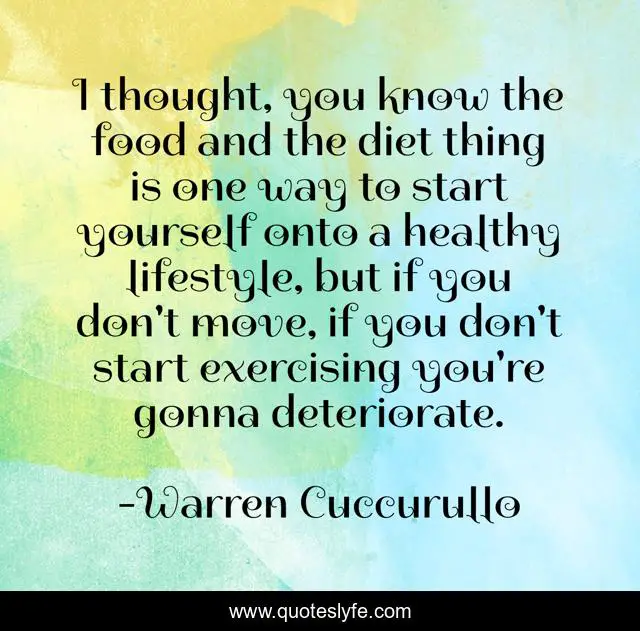 This page presents the quote "I thought, you know the food and the diet thing is one way to start yourself onto a healthy lifestyle, but if you don't move, if you don't start exercising you're gonna deteriorate.". Author of this quote is Warren Cuccurullo. This quote is about food, healthy, yourself,.