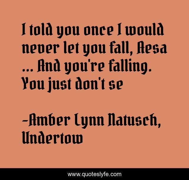 This page presents the quote "I told you once I would never let you fall, Aesa ... And you're falling. You just don't se". Author of this quote is Amber Lynn Natusch, Undertow. This quote is about decker, broken, trust, fallen, aesa,.
