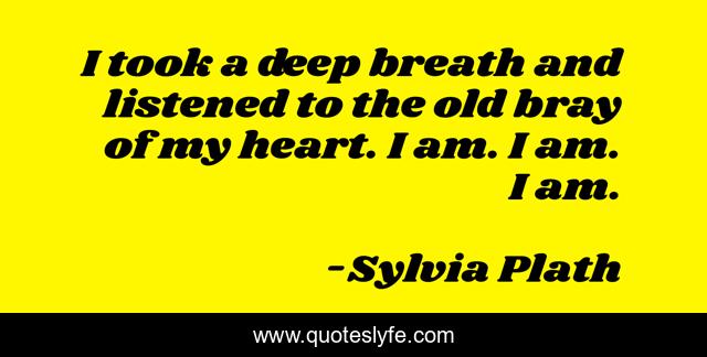 This page presents the quote "I took a deep breath and listened to the old bray of my heart. I am. I am. I am.". Author of this quote is Sylvia Plath. This quote is about heart, deep,.