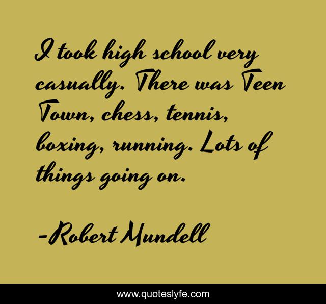 This page presents the quote "I took high school very casually. There was Teen Town, chess, tennis, boxing, running. Lots of things going on.". Author of this quote is Robert Mundell. This quote is about school, tennis, high school,.