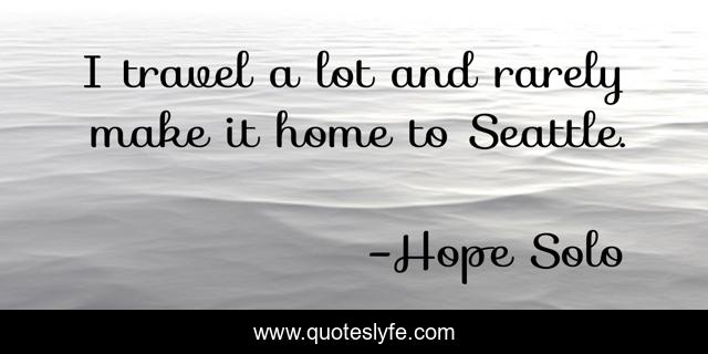 This page presents the quote "I travel a lot and rarely make it home to Seattle.". Author of this quote is Hope Solo. This quote is about home, seattle, lot,.