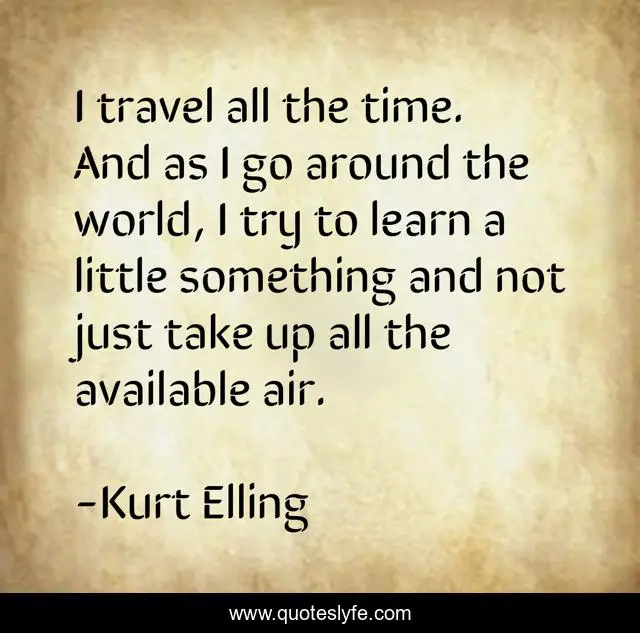 This page presents the quote "I travel all the time. And as I go around the world, I try to learn a little something and not just take up all the available air.". Author of this quote is Kurt Elling. This quote is about world, time, learn,.