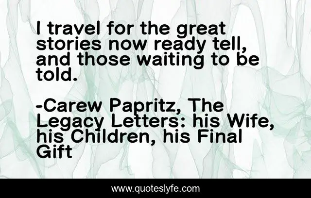 "Carew Papritz, The Legacy Letters: his Wife, his Children, his Final Gift Quotes." Quoteslyfe.com, 2025. Tue. 09 Dec. 2025. <https://www.quoteslyfe.com/quote/I-travel-for-the-great-stories-now-137333>.