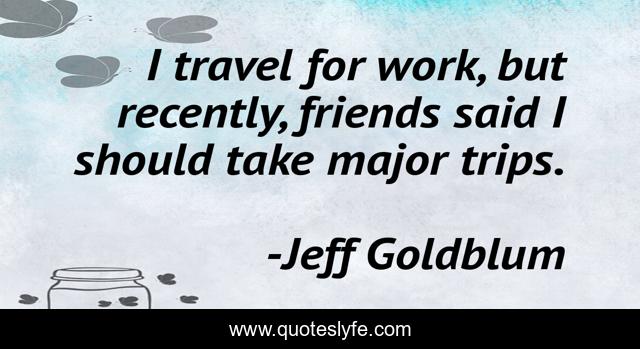 This page presents the quote "I travel for work, but recently, friends said I should take major trips.". Author of this quote is Jeff Goldblum. This quote is about work, friends, said,.