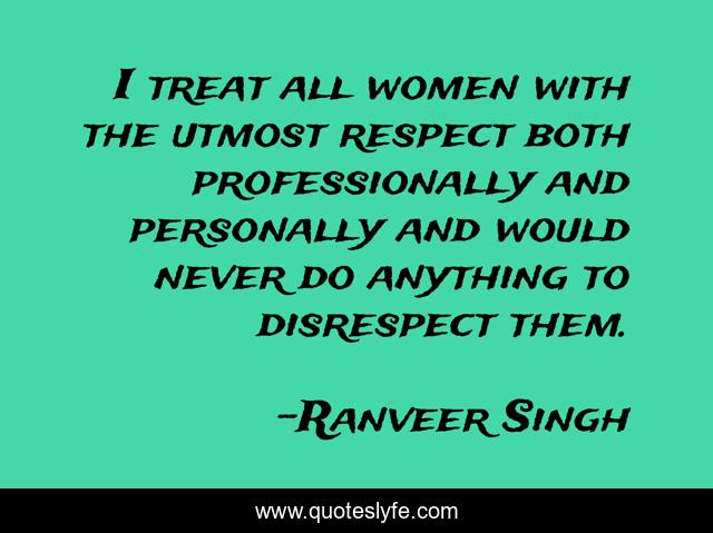 "Ranveer Singh Quotes." Quoteslyfe.com, 2025. Mon. 08 Dec. 2025. <https://www.quoteslyfe.com/quote/I-treat-all-women-with-the-utmost-283477>.