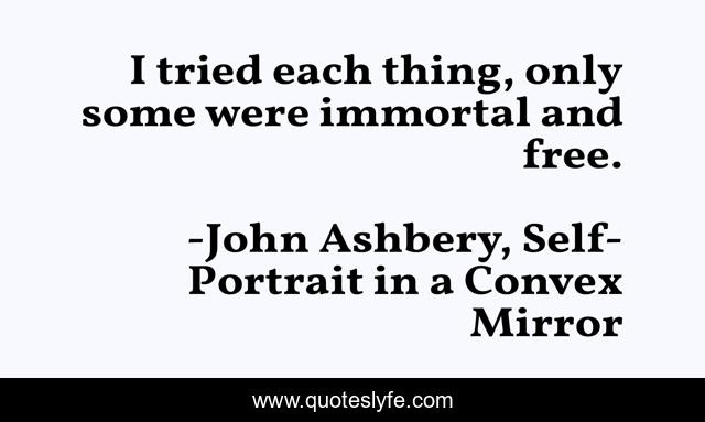 This page presents the quote "I tried each thing, only some were immortal and free.". Author of this quote is John Ashbery, Self-Portrait in a Convex Mirror. .