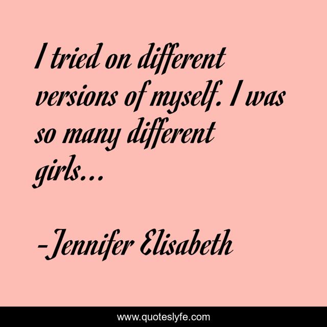 "Jennifer Elisabeth Quotes." Quoteslyfe.com, 2025. Fri. 05 Dec. 2025. <https://www.quoteslyfe.com/quote/I-tried-on-different-versions-of-myself-171418>.