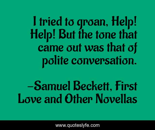 This page presents the quote "I tried to groan, Help! Help! But the tone that came out was that of polite conversation.". Author of this quote is Samuel Beckett, First Love and Other Novellas. This quote is about despair, help,.