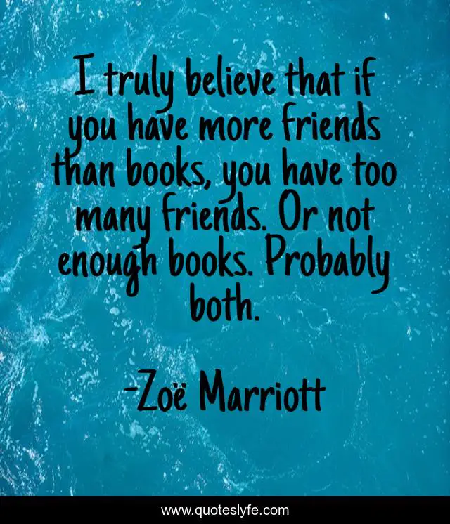This page presents the quote "I truly believe that if you have more friends than books, you have too many friends. Or not enough books. Probably both.". Author of this quote is Zoë Marriott. This quote is about twitter, books, friendship,.