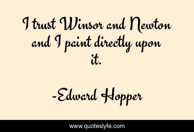 This page presents the quote "I trust Winsor and Newton and I paint directly upon it.". Author of this quote is Edward Hopper. This quote is about paint, newton, directly,.