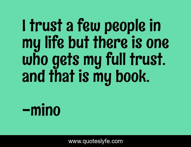 This page presents the quote "I trust a few people in my life but there is one who gets my full trust. and that is my book.". Author of this quote is mino. .