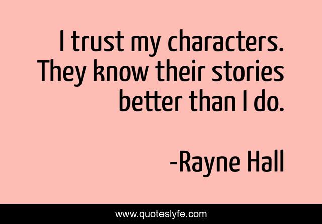 "Rayne Hall Quotes." Quoteslyfe.com, 2025. Sat. 06 Dec. 2025. <https://www.quoteslyfe.com/quote/I-trust-my-characters-They-know-their-215086>.