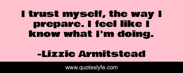 This page presents the quote "I trust myself, the way I prepare. I feel like I know what I'm doing.". Author of this quote is Lizzie Armitstead. This quote is about myself, prepare,.