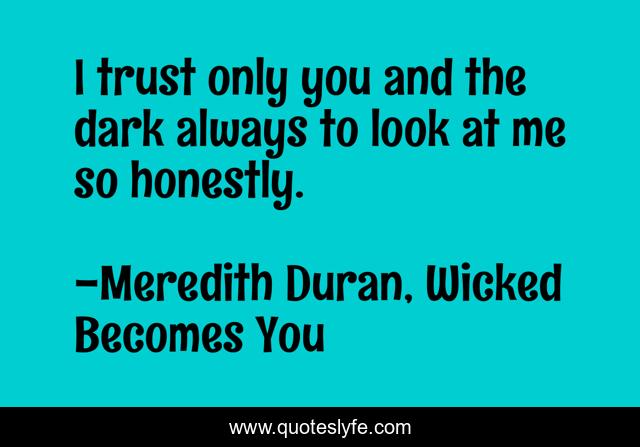 This page presents the quote "I trust only you and the dark always to look at me so honestly.". Author of this quote is Meredith Duran, Wicked Becomes You. This quote is about looking, seeing, darkness,.