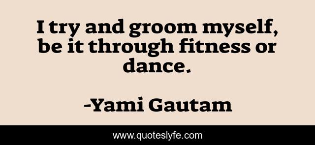 This page presents the quote "I try and groom myself, be it through fitness or dance.". Author of this quote is Yami Gautam. This quote is about dance, try, myself,.