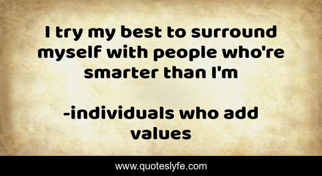 This page presents the quote "I try my best to surround myself with people who're smarter than I'm". Author of this quote is individuals who add values. .