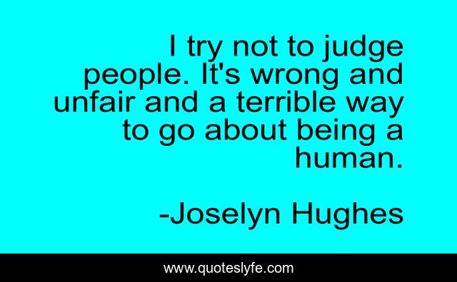 This page presents the quote "I try not to judge people. It's wrong and unfair and a terrible way to go about being a human.". Author of this quote is Joselyn Hughes. This quote is about judgement, living,.