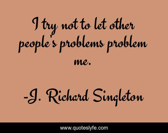 This page presents the quote "I try not to let other people's problems problem me.". Author of this quote is J. Richard Singleton. This quote is about philosophy-of-life, self-esteem, problems, self-improvement, self-help,.