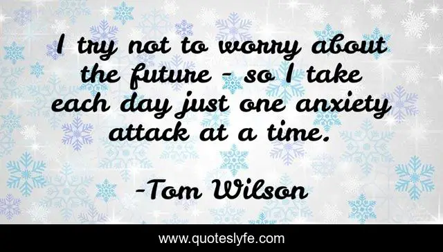This page presents the quote "I try not to worry about the future - so I take each day just one anxiety attack at a time.". Author of this quote is Tom Wilson. This quote is about future, anxiety, day,.