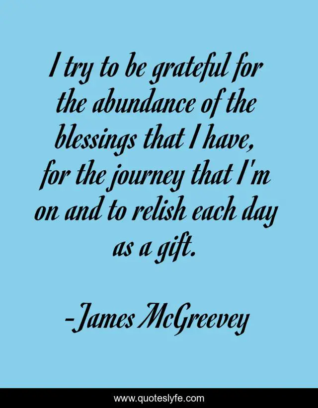 This page presents the quote "I try to be grateful for the abundance of the blessings that I have, for the journey that I'm on and to relish each day as a gift.". Author of this quote is James McGreevey. This quote is about journey, day, grateful,.