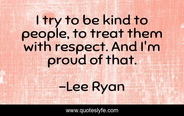 This page presents the quote "I try to be kind to people, to treat them with respect. And I'm proud of that.". Author of this quote is Lee Ryan. This quote is about proud, be kind, treat,.