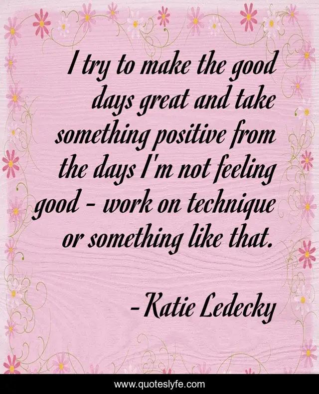 This page presents the quote "I try to make the good days great and take something positive from the days I'm not feeling good - work on technique or something like that.". Author of this quote is Katie Ledecky. This quote is about work, great, good,.