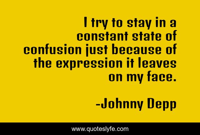 This page presents the quote "I try to stay in a constant state of confusion just because of the expression it leaves on my face.". Author of this quote is Johnny Depp. This quote is about confusion, humor,.