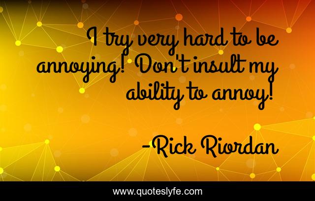 "Rick Riordan Quotes." Quoteslyfe.com, 2025. Fri. 05 Dec. 2025. <https://www.quoteslyfe.com/quote/I-try-very-hard-to-be-annoying-41548>.