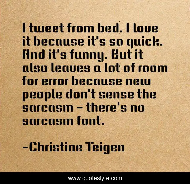 This page presents the quote "I tweet from bed. I love it because it's so quick. And it's funny. But it also leaves a lot of room for error because new people don't sense the sarcasm - there's no sarcasm font.". Author of this quote is Christine Teigen. This quote is about sarcasm, love, affection, people,.