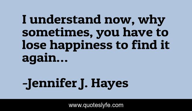 This page presents the quote "I understand now, why sometimes, you have to lose happiness to find it again…". Author of this quote is Jennifer J. Hayes. This quote is about love-hurts, love, affection, romance-novels,.