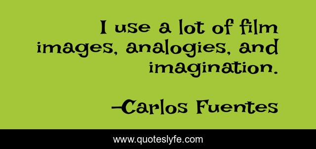 This page presents the quote "I use a lot of film images, analogies, and imagination.". Author of this quote is Carlos Fuentes. This quote is about images, film, lot,.