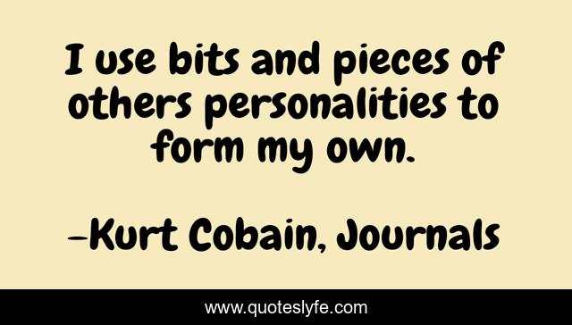 This page presents the quote "I use bits and pieces of others personalities to form my own.". Author of this quote is Kurt Cobain, Journals. This quote is about personality, bits, personalities, pieces,.