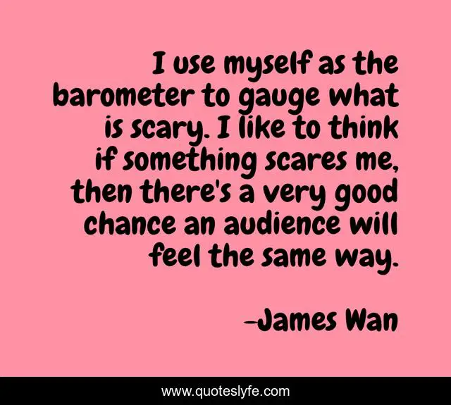 This page presents the quote "I use myself as the barometer to gauge what is scary. I like to think if something scares me, then there's a very good chance an audience will feel the same way.". Author of this quote is James Wan. This quote is about me, myself, good,.