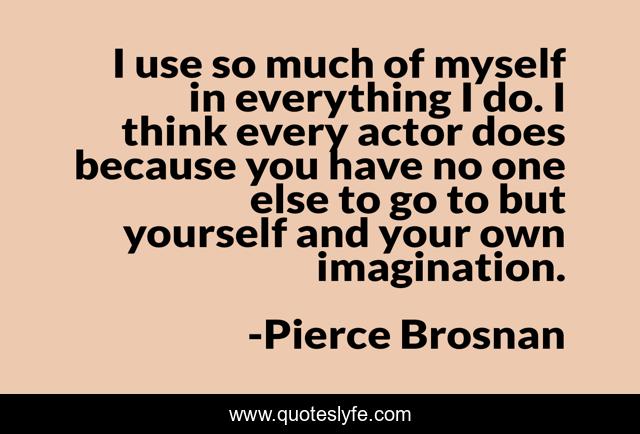 This page presents the quote "I use so much of myself in everything I do. I think every actor does because you have no one else to go to but yourself and your own imagination.". Author of this quote is Pierce Brosnan. This quote is about myself, think, yourself,.