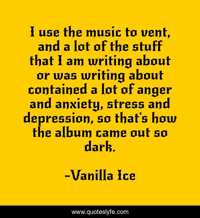 This page presents the quote "I use the music to vent, and a lot of the stuff that I am writing about or was writing about contained a lot of anger and anxiety, stress and depression, so that's how the album came out so dark.". Author of this quote is Vanilla Ice. This quote is about stress, music, depression,.