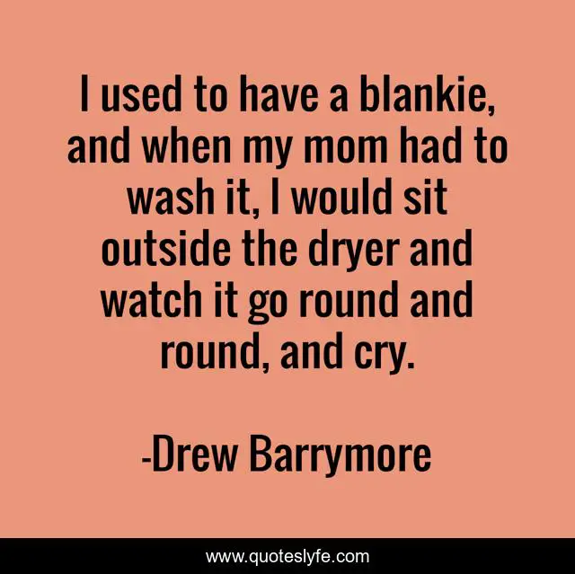 This page presents the quote "I used to have a blankie, and when my mom had to wash it, I would sit outside the dryer and watch it go round and round, and cry.". Author of this quote is Drew Barrymore. This quote is about outside, cry, watch,.