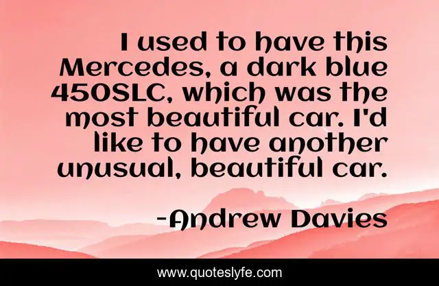 This page presents the quote "I used to have this Mercedes, a dark blue 450SLC, which was the most beautiful car. I'd like to have another unusual, beautiful car.". Author of this quote is Andrew Davies. This quote is about beautiful, blue, dark,.