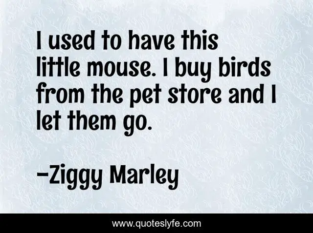 This page presents the quote "I used to have this little mouse. I buy birds from the pet store and I let them go.". Author of this quote is Ziggy Marley. This quote is about little, mouse, birds,.