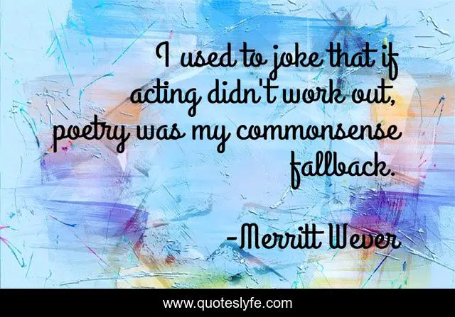 This page presents the quote "I used to joke that if acting didn't work out, poetry was my commonsense fallback.". Author of this quote is Merritt Wever. This quote is about joke, acting, work,.