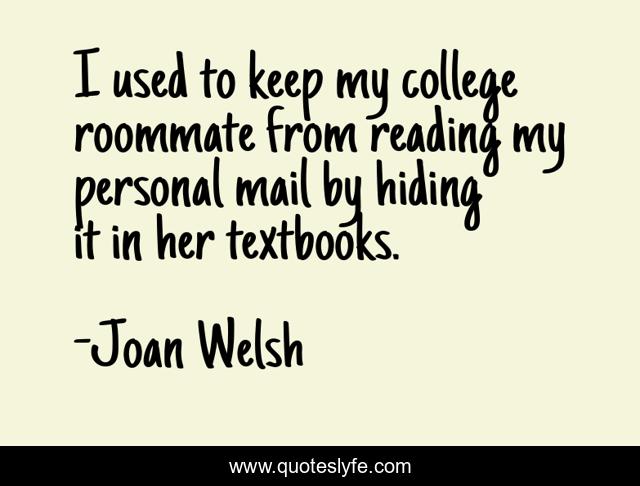 This page presents the quote "I used to keep my college roommate from reading my personal mail by hiding it in her textbooks.". Author of this quote is Joan Welsh. .