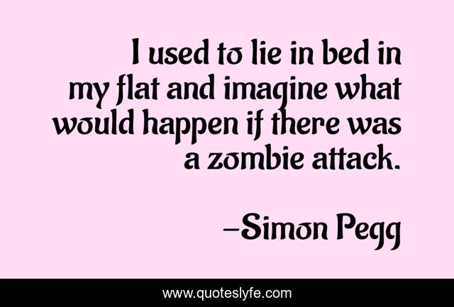 This page presents the quote "I used to lie in bed in my flat and imagine what would happen if there was a zombie attack.". Author of this quote is Simon Pegg. This quote is about zombie, lie, bed,.