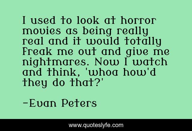 This page presents the quote "I used to look at horror movies as being really real and it would totally freak me out and give me nightmares. Now I watch and think, 'whoa how'd they do that?'". Author of this quote is Evan Peters. This quote is about me, think, look,.